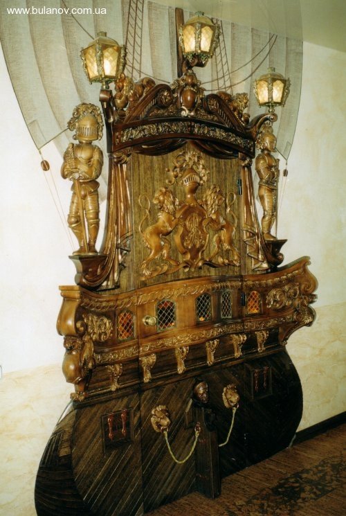 Окна каюты - латунь, витражи, стекло, подсветка.