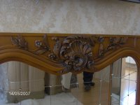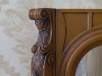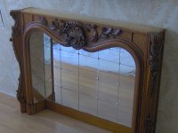 Материалы: натуральное дерево, зеркала, бронза. Сверху покрывается мраморной плитой.